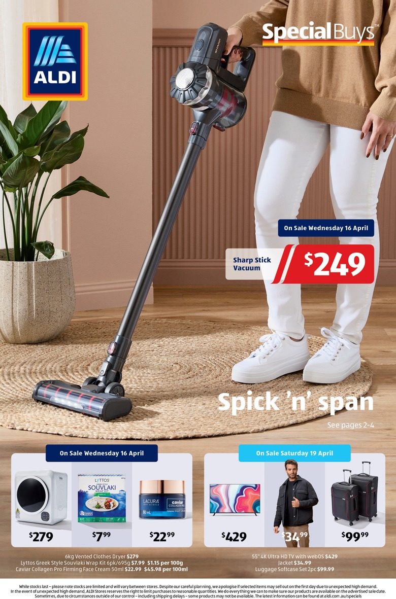 ALDI Catalogue 16 - 19 Apr 2025 Apr 16, 2025 - Apr 20, 2025 ALDI Catalogue « 1234567891011121314151617181920212223242526272829 / 29 » Share & Subscribe Subscribe to Target CataloguesKmart CataloguesBig W CataloguesALDI CataloguesIGA CataloguesColes CataloguesWoolworths CataloguesAll Catalogues (40+) » Other ALDI Catalogue ALDI Catalogue 22 - 24 Apr 2026 ALDI Catalogue 15 - 18 Apr 2026 ALDI Catalogue 8 - 11 Apr 2026 ALDI Catalogue 1 - 4 Apr 2026 ALDI Catalogue 25 - 28 Mar 2026 Other Latest Catalogue ALDI Catalogue 22 - 24 Apr 2026Amart Catalogue Jan 2025Amcal Catalogue April 8 - 26, 2026 Mega SaleAnaconda Catalogue EOFY Sale 10 - 26 Jun 2025Angus and Coote Catalogue April 12 - May 10, 2026 Mother's Day Gift GuideAustralia Post Catalogue Back to School Jan 2025Australian Butchers Catalogue 7 - 13 Aug 2024Autobarn Catalogue March 24 - April 14, 2026 All For Easter Holiday EssentialsBaby Bunting Catalogue May 2024BCF Catalogue April 6 - 27, 2026 ing Holiday Fun Starts HereBest & Less Catalogue Aug 2024Bob Jane Catalogue Jan 2025Cheap As Chips Catalogue December 23, 2025 - January 6, 2026 Boxing Day Door Buster DealsChemist King Catalogue 7 - 21 Aug 2024Chemist Warehouse Catalogue Jan 2025Christmas Aldi Catalogue Big Sale ClearanceColes Catalogue April 15 - 21, 2026 QLD NORTHCostco Catalogue 9 Jun - 6 Jul 2025Discount Drug Store Catalogue Feb 2024Early Settler Cataogue EOFY 2024Ezibuy Catalogue Sale Feb 2024Foodland Catalogue 18 - 24 Feb 2026Foodworks Catalogue 11 - 17 Feb 2026Freedom Furniture Catalogue Aug 2024Goldmark Catalogue April 12 - May 10, 2026 Gifts She'll LoveHarris Scarfe Catalogue 24 May - 7 Jun 2025Harvey Norman Catalogue April 9 - 17, 2026Hop into Bunnings Catalogue March 11 - April 5, 2026 Warehouse for the Lowest PricesIGA Catalogue April 15 - 21, 2026 NSW Local Grocer V1IKEA Catalogue Jun 2024Innovations Catalogue Summer 2024Jaycar Catalogue 7 - 20 Jan 2025JB Hi-Fi Catalogue 22 - 28 May 2025Kmart Catalogue April 13 - May 14, 2026 OnePass MembershipLenovo Catalogue Jan 2024Liquorland Catalogue 7 - 13 Feb 2024Michael Hill Catalogue Unmissable Sale 2024Mitre 10 Catalogue EOFY 2024Mum, Sorted Big W Catalogue April 15, 2026 PreviewMyer Catalogue April 7 - 19, 2026 Winter Home SaleNew World Mailer 13 - 19 Apr 2026Officeworks Catalogue March 30 - April 14, 2026 We've Dropped Prices on Hundreds of School Holiday Must-HavesPriceline Catalogue Week 36-37 2025Prouds Catalogue April 12 - May 10, 2026 Celebrate and SaveRebel Sports Catalogue Jun 2024Repco Catalogue Father\'s Day 2024Sale Fantastic Furniture Catalogue December 18, 2024 - February 3, 2025 Spotlight Catalogue 15 Jan - 4 Feb 2025Stratco Catalogue Jan 2025Supercheap Auto Catalogue December 14 - 21, 2025 Make It A Super ChristmasTarget Catalogue 3 - 27 Apr 2025The Good Guys Catalogue 16 - 22 Jan 2025The Reject Shop Catalogue Jun 2024Total Tools Catalogue Father\'s Day 2024Toyworld Catalogue Toy Sale Oct - Nov 2024Weekly Woolworths Catalogue April 15 - 21, 2026 WAWoolworths Weekly Woolworths Mailer (Countdown) April 12 - 19, 2026 ALDI Catalogue 16 - 19 Apr 2025 promotes the latest home products, specials, and great deals. Enjoy this week\'s new catalogue. 16 Apr 2025 Editor