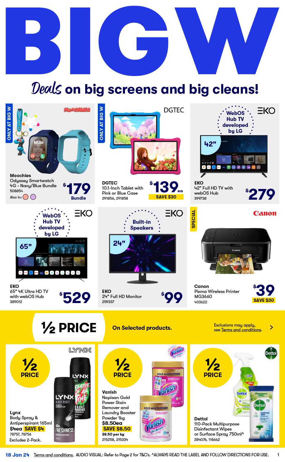 Big W Catalogue 18 - 31 Jan 2024 Jan 18, 2024 - Feb 1, 2024 Big W Catalogue Browse Live Catalogue Share & Subscribe Subscribe to Target CataloguesKmart CataloguesBig W CataloguesALDI CataloguesIGA CataloguesColes CataloguesWoolworths CataloguesAll Catalogues (40+) » Other Big W Catalogue School's Out Big W Catalogue April 1, 2026 Preview Choc Full of Fun Big W Catalogue March 25, 2026 Preview Tech Week Big W Catalogue March 11 - 25, 2026 Have a Cracking Easter Big W Catalogue March 11, 2026 Preview New Season Home Big W Catalogue February 25, 2026 Preview Other Latest Catalogue ALDI Catalogue 15 - 18 Apr 2026Amart Catalogue Jan 2025Amcal Catalogue April 8 - 26, 2026 Mega SaleAnaconda Catalogue EOFY Sale 10 - 26 Jun 2025Angus and Coote Catalogue April 12 - May 10, 2026 Mother's Day Gift GuideAustralia Post Catalogue Back to School Jan 2025Australian Butchers Catalogue 7 - 13 Aug 2024Autobarn Catalogue March 24 - April 14, 2026 All For Easter Holiday EssentialsBaby Bunting Catalogue May 2024BCF Catalogue April 6 - 27, 2026 ing Holiday Fun Starts HereBest & Less Catalogue Aug 2024Bob Jane Catalogue Jan 2025Cheap As Chips Catalogue December 23, 2025 - January 6, 2026 Boxing Day Door Buster DealsChemist King Catalogue 7 - 21 Aug 2024Chemist Warehouse Catalogue Jan 2025Christmas Aldi Catalogue Big Sale ClearanceColes Catalogue April 15 - 21, 2026 QLD NORTHCostco Catalogue 9 Jun - 6 Jul 2025Discount Drug Store Catalogue Feb 2024Early Settler Cataogue EOFY 2024Ezibuy Catalogue Sale Feb 2024Foodland Catalogue 18 - 24 Feb 2026Foodworks Catalogue 11 - 17 Feb 2026Freedom Furniture Catalogue Aug 2024Goldmark Catalogue April 12 - May 10, 2026 Gifts She'll LoveHarris Scarfe Catalogue 24 May - 7 Jun 2025Harvey Norman Catalogue April 9 - 17, 2026Hop into Bunnings Catalogue March 11 - April 5, 2026 Warehouse for the Lowest PricesIGA Catalogue April 15 - 21, 2026 NSW Local Grocer V1IKEA Catalogue Jun 2024Innovations Catalogue Summer 2024Jaycar Catalogue 7 - 20 Jan 2025JB Hi-Fi Catalogue 22 - 28 May 2025Lenovo Catalogue Jan 2024Liquorland Catalogue 7 - 13 Feb 2024Low Prices For Life - April School Holidays Kmart Catalogue April 1 - 29, 2026 Michael Hill Catalogue Unmissable Sale 2024Mitre 10 Catalogue EOFY 2024Myer Catalogue April 7 - 19, 2026 Winter Home SaleNew World Mailer 13 - 19 Apr 2026Officeworks Catalogue March 30 - April 14, 2026 We've Dropped Prices on Hundreds of School Holiday Must-HavesPriceline Catalogue Week 36-37 2025Prouds Catalogue April 12 - May 10, 2026 Celebrate and SaveRebel Sports Catalogue Jun 2024Repco Catalogue Father\'s Day 2024Sale Fantastic Furniture Catalogue December 18, 2024 - February 3, 2025 School's Out Big W Catalogue April 1, 2026 PreviewSpotlight Catalogue 15 Jan - 4 Feb 2025Stratco Catalogue Jan 2025Supercheap Auto Catalogue December 14 - 21, 2025 Make It A Super ChristmasTarget Catalogue 3 - 27 Apr 2025The Good Guys Catalogue 16 - 22 Jan 2025The Reject Shop Catalogue Jun 2024Total Tools Catalogue Father\'s Day 2024Toyworld Catalogue Toy Sale Oct - Nov 2024Weekly Woolworths Catalogue April 15 - 21, 2026 WAWoolworths Weekly Woolworths Mailer (Countdown) April 12 - 19, 2026 Flip through the pages of new Big W Catalogue 18 - 31 Jan 2024 for the TV deals and tablets, printers, travel products, toys, and many others. 18 Jan 2024 Editor