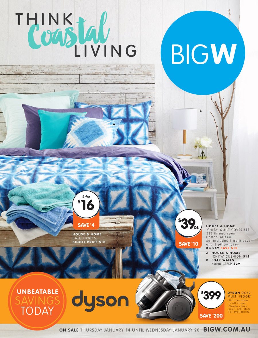 Big W Catalogue Home Sale 14 Jan 2016 Big W Catalogue « 123456789101112131415161718192021 / 21 » Share & Subscribe Subscribe to Target CataloguesKmart CataloguesBig W CataloguesALDI CataloguesIGA CataloguesColes CataloguesWoolworths CataloguesAll Catalogues (40+) » Other Big W Catalogue School's Out Big W Catalogue April 1, 2026 Preview Choc Full of Fun Big W Catalogue March 25, 2026 Preview Tech Week Big W Catalogue March 11 - 25, 2026 Have a Cracking Easter Big W Catalogue March 11, 2026 Preview New Season Home Big W Catalogue February 25, 2026 Preview Other Latest Catalogue ALDI Catalogue 8 - 11 Apr 2026Amart Catalogue Jan 2025Amcal Catalogue March 11 - April 5, 2026 Hop into SavingsAnaconda Catalogue EOFY Sale 10 - 26 Jun 2025Angus and Coote Catalogue March 22 - April 12, 2026 Celebrating Love Since 1895Australia Post Catalogue Back to School Jan 2025Australian Butchers Catalogue 7 - 13 Aug 2024Autobarn Catalogue March 24 - April 14, 2026 All For Easter Holiday EssentialsBaby Bunting Catalogue May 2024Best & Less Catalogue Aug 2024Bob Jane Catalogue Jan 2025Cheap As Chips Catalogue December 23, 2025 - January 6, 2026 Boxing Day Door Buster DealsChemist King Catalogue 7 - 21 Aug 2024Chemist Warehouse Catalogue Jan 2025Christmas Aldi Catalogue Big Sale ClearanceColes Catalogue April 1 - 7, 2026 WA PT HEDLANDCostco Catalogue 9 Jun - 6 Jul 2025Discount Drug Store Catalogue Feb 2024Early Settler Cataogue EOFY 2024Ezibuy Catalogue Sale Feb 2024Foodland Catalogue 18 - 24 Feb 2026Foodworks Catalogue 11 - 17 Feb 2026Freedom Furniture Catalogue Aug 2024Goldmark Catalogue February 15 - March 22, 2026 Get the Look for LessHarris Scarfe Catalogue 24 May - 7 Jun 2025Harvey Norman Catalogue Computers Amazing Tech Deals April 1 - 15, 2026Hop into Bunnings Catalogue March 11 - April 5, 2026 Warehouse for the Lowest PricesIGA Catalogue April 1 - 7, 2026 NSW Large V2IKEA Catalogue Jun 2024Innovations Catalogue Summer 2024Jaycar Catalogue 7 - 20 Jan 2025JB Hi-Fi Catalogue 22 - 28 May 2025Lenovo Catalogue Jan 2024Liquorland Catalogue 7 - 13 Feb 2024Low Prices For Life - April School Holidays Kmart Catalogue April 1 - 29, 2026 Make It A BCF Catalogue March 16 - April 6, 2026 ing Fun EasterMichael Hill Catalogue Unmissable Sale 2024Mitre 10 Catalogue EOFY 2024Myer Catalogue March 29 - April 19, 2026 Toy SaleNew World Mailer 30 Mar - 5 Apr 2026Officeworks Catalogue March 30 - April 14, 2026 We've Dropped Prices on Hundreds of School Holiday Must-HavesPriceline Catalogue Week 36-37 2025Prouds Catalogue March 22 - April 12, 2026 Sparkle and SaveRebel Sports Catalogue Jun 2024Repco Catalogue Father\'s Day 2024Sale Fantastic Furniture Catalogue December 18, 2024 - February 3, 2025 School's Out Big W Catalogue April 1, 2026 PreviewSpotlight Catalogue 15 Jan - 4 Feb 2025Stratco Catalogue Jan 2025Supercheap Auto Catalogue December 14 - 21, 2025 Make It A Super ChristmasTarget Catalogue 3 - 27 Apr 2025The Good Guys Catalogue 16 - 22 Jan 2025The Reject Shop Catalogue Jun 2024Total Tools Catalogue Father\'s Day 2024Toyworld Catalogue Toy Sale Oct - Nov 2024Weekly Woolworths Catalogue April 1 - 7, 2026 NSW NorthWoolworths Weekly Woolworths Mailer (Countdown) March 29 - April 12, 2026 Big W Catalogue Home Sale 14 Jan 2016 is generally focused on summer essentials of your home. Bedroom and bathrrom are on spot light.