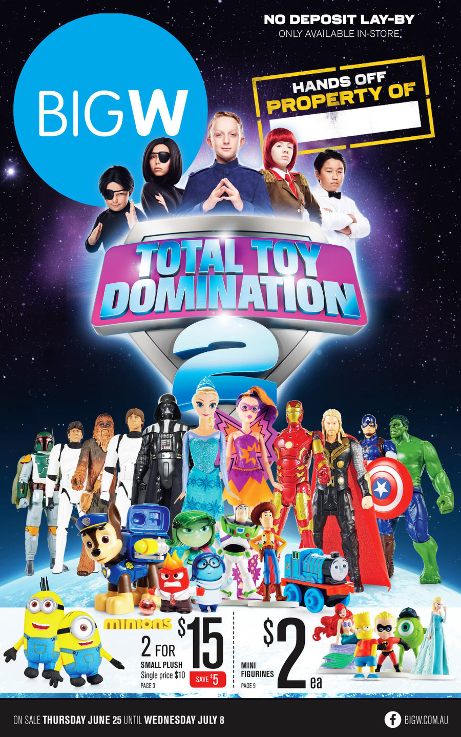 The big w toy sale catalogue 25 jun 2015 has offers like Minions Small Plush priced at $15.00, Minions Small Plush priced at $15.00, NEW Bart Simpson Mini Figurine for $2.00, NEW Dash Mini Figurine at $2.00 and NEW Frozen Elsa Mini Figurine for $2.00.