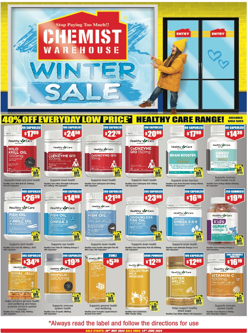 Chemist Warehouse Catalogue Winter 2024 Jun 30, 2024 - Jun 13, 2024 Chemist Warehouse Catalogue « 1234567891011121314151617181920212223242526272829303132333435363738394041 / 41 » Share & Subscribe Subscribe to Target CataloguesKmart CataloguesBig W CataloguesALDI CataloguesIGA CataloguesColes CataloguesWoolworths CataloguesAll Catalogues (40+) » Other Chemist Warehouse Catalogue Chemist Warehouse Catalogue Jan 2025 Chemist Warehouse Catalogue Beauty Oct 2024 Chemist Warehouse Catalogue Father's Day 2024 Chemist Warehouse Catalogue 25 Jul - 7 Aug 2024 Chemist Warehouse Catalogue 27 Jun - 10 Jul 2024 Other Latest Catalogue ALDI Catalogue 8 - 11 Apr 2026Amart Catalogue Jan 2025Amcal Catalogue March 11 - April 5, 2026 Hop into SavingsAnaconda Catalogue EOFY Sale 10 - 26 Jun 2025Angus and Coote Catalogue March 22 - April 12, 2026 Celebrating Love Since 1895Australia Post Catalogue Back to School Jan 2025Australian Butchers Catalogue 7 - 13 Aug 2024Autobarn Catalogue March 24 - April 14, 2026 All For Easter Holiday EssentialsBaby Bunting Catalogue May 2024Best & Less Catalogue Aug 2024Bob Jane Catalogue Jan 2025Cheap As Chips Catalogue December 23, 2025 - January 6, 2026 Boxing Day Door Buster DealsChemist King Catalogue 7 - 21 Aug 2024Chemist Warehouse Catalogue Jan 2025Christmas Aldi Catalogue Big Sale ClearanceColes Catalogue April 1 - 7, 2026 WA PT HEDLANDCostco Catalogue 9 Jun - 6 Jul 2025Discount Drug Store Catalogue Feb 2024Early Settler Cataogue EOFY 2024Ezibuy Catalogue Sale Feb 2024Foodland Catalogue 18 - 24 Feb 2026Foodworks Catalogue 11 - 17 Feb 2026Freedom Furniture Catalogue Aug 2024Goldmark Catalogue February 15 - March 22, 2026 Get the Look for LessHarris Scarfe Catalogue 24 May - 7 Jun 2025Harvey Norman Catalogue Computers Amazing Tech Deals April 1 - 15, 2026Hop into Bunnings Catalogue March 11 - April 5, 2026 Warehouse for the Lowest PricesIGA Catalogue April 1 - 7, 2026 NSW Large V2IKEA Catalogue Jun 2024Innovations Catalogue Summer 2024Jaycar Catalogue 7 - 20 Jan 2025JB Hi-Fi Catalogue 22 - 28 May 2025Lenovo Catalogue Jan 2024Liquorland Catalogue 7 - 13 Feb 2024Low Prices For Life - April School Holidays Kmart Catalogue April 1 - 29, 2026 Make It A BCF Catalogue March 16 - April 6, 2026 ing Fun EasterMichael Hill Catalogue Unmissable Sale 2024Mitre 10 Catalogue EOFY 2024Myer Catalogue March 29 - April 19, 2026 Toy SaleNew World Mailer 30 Mar - 5 Apr 2026Officeworks Catalogue March 30 - April 14, 2026 We've Dropped Prices on Hundreds of School Holiday Must-HavesPriceline Catalogue Week 36-37 2025Prouds Catalogue March 22 - April 12, 2026 Sparkle and SaveRebel Sports Catalogue Jun 2024Repco Catalogue Father\'s Day 2024Sale Fantastic Furniture Catalogue December 18, 2024 - February 3, 2025 School's Out Big W Catalogue April 1, 2026 PreviewSpotlight Catalogue 15 Jan - 4 Feb 2025Stratco Catalogue Jan 2025Supercheap Auto Catalogue December 14 - 21, 2025 Make It A Super ChristmasTarget Catalogue 3 - 27 Apr 2025The Good Guys Catalogue 16 - 22 Jan 2025The Reject Shop Catalogue Jun 2024Total Tools Catalogue Father\'s Day 2024Toyworld Catalogue Toy Sale Oct - Nov 2024Weekly Woolworths Catalogue April 1 - 7, 2026 NSW NorthWoolworths Weekly Woolworths Mailer (Countdown) March 29 - April 12, 2026 Chemist Warehouse Catalogue Winter 2024 with new deals on vitamins and supplements, as seen on tv, and popular brands. 30 Jun 2024 Editor