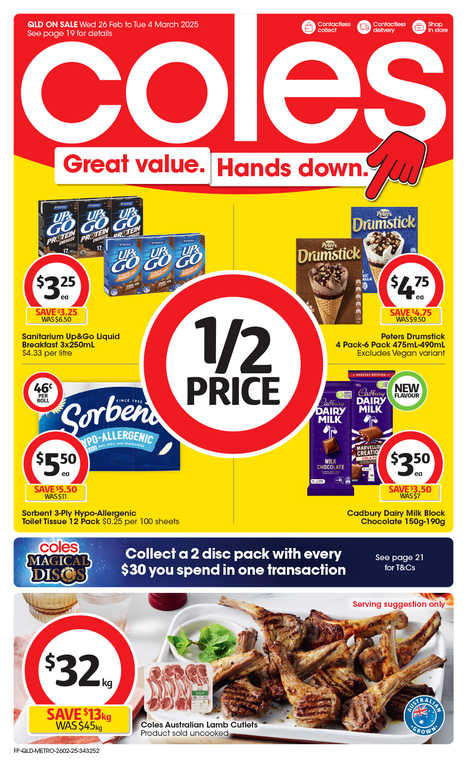 Coles Catalogue February 26 - March 4, 2025 QLD METRO Feb 26, 2025 - Mar 5, 2025 Coles Catalogue « 1234567891011121314151617181920212223242526272829303132333435363738394041424344 / 44 » Share & Subscribe Subscribe to Target CataloguesKmart CataloguesBig W CataloguesALDI CataloguesIGA CataloguesColes CataloguesWoolworths CataloguesAll Catalogues (40+) » Other Coles Catalogue Coles Catalogue April 1 - 7, 2026 WA PT HEDLAND Coles Catalogue April 1 - 7, 2026 QLD NORTH Coles Catalogue April 1 - 7, 2026 NT METRO Coles Catalogue April 1 - 7, 2026 TAS METRO Coles Catalogue April 1 - 7, 2026 SA METRO Other Latest Catalogue ALDI Catalogue 8 - 11 Apr 2026Amart Catalogue Jan 2025Amcal Catalogue March 11 - April 5, 2026 Hop into SavingsAnaconda Catalogue EOFY Sale 10 - 26 Jun 2025Angus and Coote Catalogue March 22 - April 12, 2026 Celebrating Love Since 1895Australia Post Catalogue Back to School Jan 2025Australian Butchers Catalogue 7 - 13 Aug 2024Autobarn Catalogue March 24 - April 14, 2026 All For Easter Holiday EssentialsBaby Bunting Catalogue May 2024Best & Less Catalogue Aug 2024Bob Jane Catalogue Jan 2025Cheap As Chips Catalogue December 23, 2025 - January 6, 2026 Boxing Day Door Buster DealsChemist King Catalogue 7 - 21 Aug 2024Chemist Warehouse Catalogue Jan 2025Christmas Aldi Catalogue Big Sale ClearanceColes Catalogue April 1 - 7, 2026 WA PT HEDLANDCostco Catalogue 9 Jun - 6 Jul 2025Discount Drug Store Catalogue Feb 2024Early Settler Cataogue EOFY 2024Ezibuy Catalogue Sale Feb 2024Foodland Catalogue 18 - 24 Feb 2026Foodworks Catalogue 11 - 17 Feb 2026Freedom Furniture Catalogue Aug 2024Goldmark Catalogue February 15 - March 22, 2026 Get the Look for LessHarris Scarfe Catalogue 24 May - 7 Jun 2025Harvey Norman Catalogue Computers Amazing Tech Deals April 1 - 15, 2026Hop into Bunnings Catalogue March 11 - April 5, 2026 Warehouse for the Lowest PricesIGA Catalogue April 1 - 7, 2026 NSW Large V2IKEA Catalogue Jun 2024Innovations Catalogue Summer 2024Jaycar Catalogue 7 - 20 Jan 2025JB Hi-Fi Catalogue 22 - 28 May 2025Lenovo Catalogue Jan 2024Liquorland Catalogue 7 - 13 Feb 2024Low Prices For Life - April School Holidays Kmart Catalogue April 1 - 29, 2026 Make It A BCF Catalogue March 16 - April 6, 2026 ing Fun EasterMichael Hill Catalogue Unmissable Sale 2024Mitre 10 Catalogue EOFY 2024Myer Catalogue March 29 - April 19, 2026 Toy SaleNew World Mailer 30 Mar - 5 Apr 2026Officeworks Catalogue March 30 - April 14, 2026 We've Dropped Prices on Hundreds of School Holiday Must-HavesPriceline Catalogue Week 36-37 2025Prouds Catalogue March 22 - April 12, 2026 Sparkle and SaveRebel Sports Catalogue Jun 2024Repco Catalogue Father\'s Day 2024Sale Fantastic Furniture Catalogue December 18, 2024 - February 3, 2025 School's Out Big W Catalogue April 1, 2026 PreviewSpotlight Catalogue 15 Jan - 4 Feb 2025Stratco Catalogue Jan 2025Supercheap Auto Catalogue December 14 - 21, 2025 Make It A Super ChristmasTarget Catalogue 3 - 27 Apr 2025The Good Guys Catalogue 16 - 22 Jan 2025The Reject Shop Catalogue Jun 2024Total Tools Catalogue Father\'s Day 2024Toyworld Catalogue Toy Sale Oct - Nov 2024Weekly Woolworths Catalogue April 1 - 7, 2026 NSW NorthWoolworths Weekly Woolworths Mailer (Countdown) March 29 - April 12, 2026 Make the most of the sale in the Coles Catalogue between February 26 - March 4, 2025! Shop smarter and save. 26 Feb 2025 Editor