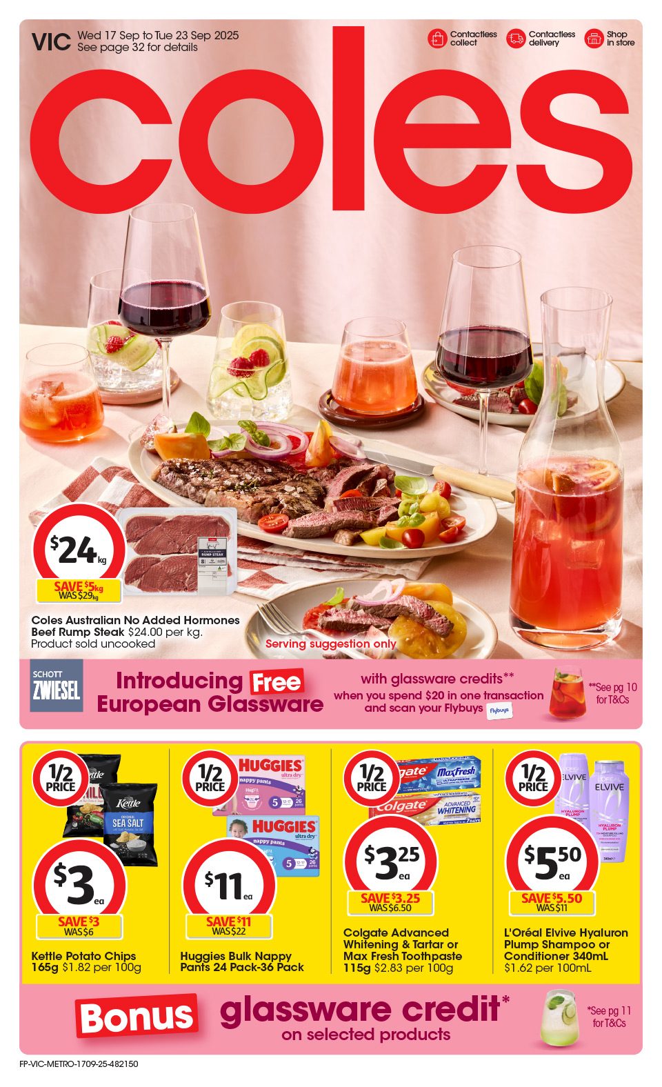 Coles Catalogue September 17 - 23, 2025 VIC METRO Sep 17, 2025 - Sep 24, 2025 Coles Catalogue « 123456789101112131415161718192021222324252627282930313233343536373839404142434445464748 / 48 » Share & Subscribe Subscribe to Target CataloguesKmart CataloguesBig W CataloguesALDI CataloguesIGA CataloguesColes CataloguesWoolworths CataloguesAll Catalogues (40+) » Other Coles Catalogue Coles Catalogue April 15 - 21, 2026 QLD NORTH Coles Catalogue April 15 - 21, 2026 WA PT HEDLAND Coles Catalogue April 15 - 21, 2026 NT METRO Coles Catalogue April 15 - 21, 2026 TAS METRO Coles Catalogue April 15 - 21, 2026 SA METRO Other Latest Catalogue ALDI Catalogue 15 - 18 Apr 2026Amart Catalogue Jan 2025Amcal Catalogue April 8 - 26, 2026 Mega SaleAnaconda Catalogue EOFY Sale 10 - 26 Jun 2025Angus and Coote Catalogue April 12 - May 10, 2026 Mother's Day Gift GuideAustralia Post Catalogue Back to School Jan 2025Australian Butchers Catalogue 7 - 13 Aug 2024Autobarn Catalogue March 24 - April 14, 2026 All For Easter Holiday EssentialsBaby Bunting Catalogue May 2024BCF Catalogue April 6 - 27, 2026 ing Holiday Fun Starts HereBest & Less Catalogue Aug 2024Bob Jane Catalogue Jan 2025Cheap As Chips Catalogue December 23, 2025 - January 6, 2026 Boxing Day Door Buster DealsChemist King Catalogue 7 - 21 Aug 2024Chemist Warehouse Catalogue Jan 2025Christmas Aldi Catalogue Big Sale ClearanceColes Catalogue April 15 - 21, 2026 QLD NORTHCostco Catalogue 9 Jun - 6 Jul 2025Discount Drug Store Catalogue Feb 2024Early Settler Cataogue EOFY 2024Ezibuy Catalogue Sale Feb 2024Foodland Catalogue 18 - 24 Feb 2026Foodworks Catalogue 11 - 17 Feb 2026Freedom Furniture Catalogue Aug 2024Goldmark Catalogue April 12 - May 10, 2026 Gifts She'll LoveHarris Scarfe Catalogue 24 May - 7 Jun 2025Harvey Norman Catalogue April 9 - 17, 2026Hop into Bunnings Catalogue March 11 - April 5, 2026 Warehouse for the Lowest PricesIGA Catalogue April 15 - 21, 2026 NSW Local Grocer V1IKEA Catalogue Jun 2024Innovations Catalogue Summer 2024Jaycar Catalogue 7 - 20 Jan 2025JB Hi-Fi Catalogue 22 - 28 May 2025Lenovo Catalogue Jan 2024Liquorland Catalogue 7 - 13 Feb 2024Low Prices For Life - April School Holidays Kmart Catalogue April 1 - 29, 2026 Michael Hill Catalogue Unmissable Sale 2024Mitre 10 Catalogue EOFY 2024Myer Catalogue April 7 - 19, 2026 Winter Home SaleNew World Mailer 6 - 12 Apr 2026Officeworks Catalogue March 30 - April 14, 2026 We've Dropped Prices on Hundreds of School Holiday Must-HavesPriceline Catalogue Week 36-37 2025Prouds Catalogue April 12 - May 10, 2026 Celebrate and SaveRebel Sports Catalogue Jun 2024Repco Catalogue Father\'s Day 2024Sale Fantastic Furniture Catalogue December 18, 2024 - February 3, 2025 School's Out Big W Catalogue April 1, 2026 PreviewSpotlight Catalogue 15 Jan - 4 Feb 2025Stratco Catalogue Jan 2025Supercheap Auto Catalogue December 14 - 21, 2025 Make It A Super ChristmasTarget Catalogue 3 - 27 Apr 2025The Good Guys Catalogue 16 - 22 Jan 2025The Reject Shop Catalogue Jun 2024Total Tools Catalogue Father\'s Day 2024Toyworld Catalogue Toy Sale Oct - Nov 2024Weekly Woolworths Catalogue April 15 - 21, 2026 WAWoolworths Weekly Woolworths Mailer (Countdown) April 12 - 19, 2026 Dive into discounts in the Coles Catalogue starting September 17 - 23, 2025! It's time to save big. 17 Sep 2025 Editor