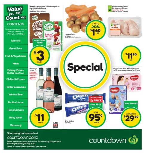 Countdown has new specials in the mailer. Browse products from fresh produce, snacks, soda, and more categories in the special category. If you like to your favourite items at lower prices, this is your chance to get them. Shop fresh produce items like kiwifruit, beef corned silverside, beef mince, and more items on pg 3-4. Use Heinz carbonara pasta sauce to make creamy spinach and bacon pasta. Read the recipe and the deal on Heinz carbonara pasta sauce on pg 10. Countdown Mailer 25 Apr - 1 May 2022 offers new cereal deals, too. One of them is a new product called cini minis churros. Kids will love it and it contains whole grain.