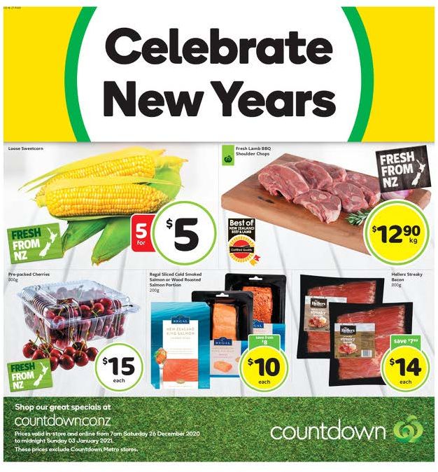 Countdown new year celebration products are available in the latest catalogue. Browse the good drinks and food deals from brands of beloved range. Find meat products of premium quality, too. Fresh lamb BBQ shoulder chops will cost only $12.90/kg. Both fresh products of the NZ fields and pantry products of the general grocery shelves are on sale. Countdown Mailer 26 Dec - 3 Jan doesn't actually surprise anyone with the end of the year sale. Croissants, Woodland eggs, McCain pizza, and soda variety at lower costs. Buy Coca-Cola or Sprite 2.25L for only $5.50. It's not only a list of deals. The catalogue is also sort of guidance for home cooking, too. A lot of recipes in these catalogues.