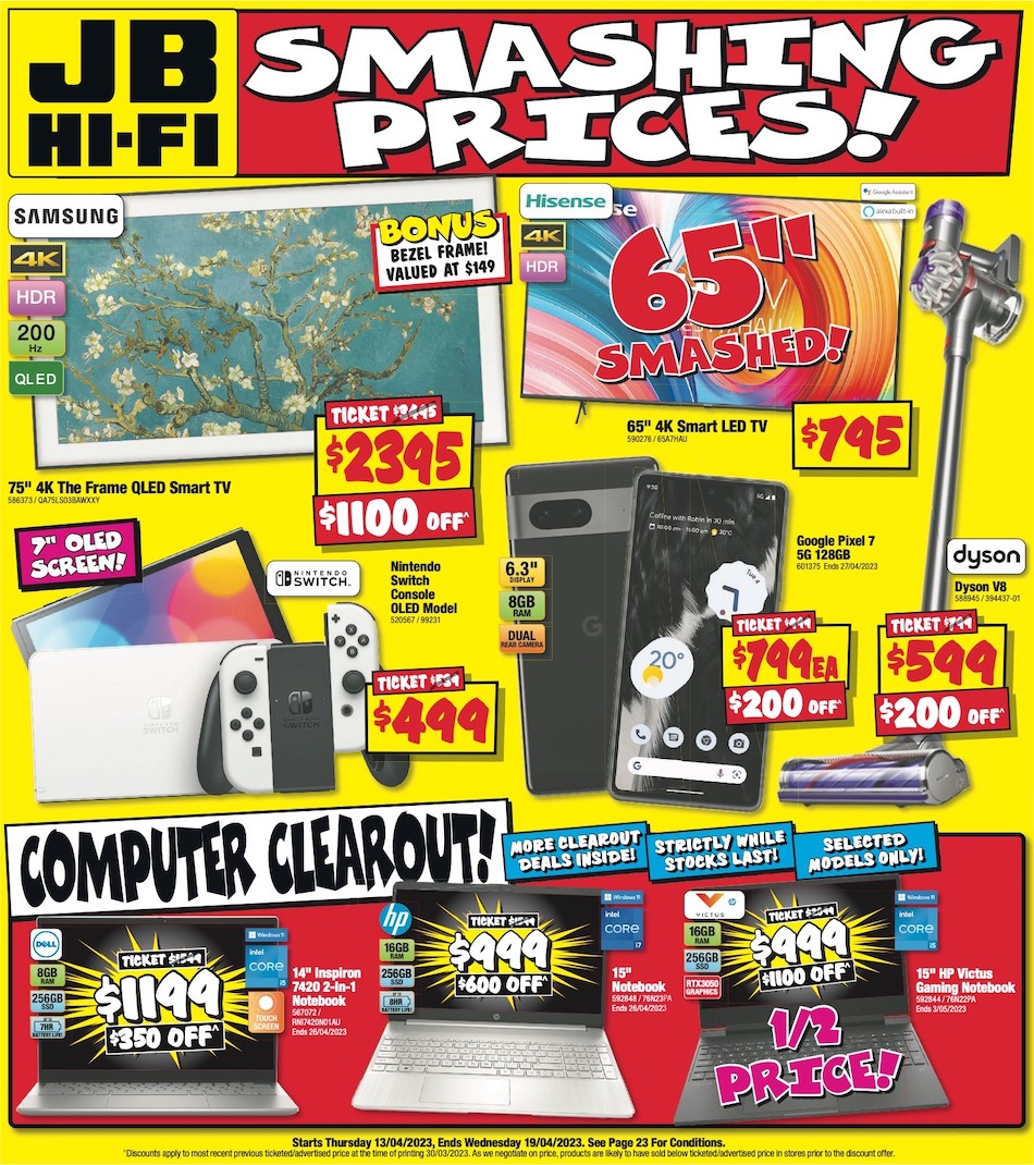 JB Hi-Fi Catalogue 13 - 19 Apr 2023 Apr 13, 2023 - Apr 20, 2023 JB Hi-Fi Catalogue « 12345678910111213141516171819202122232425 / 25 » Share & Subscribe Subscribe to Target CataloguesKmart CataloguesBig W CataloguesALDI CataloguesIGA CataloguesColes CataloguesWoolworths CataloguesAll Catalogues (40+) » Other JB Hi-Fi Catalogue JB Hi-Fi Catalogue 22 - 28 May 2025 JB Hi-Fi Catalogue 30 Jan - 12 Feb 2025 JB Hi-Fi Catalogue Big Brand 16 - 29 jan 2025 JB Hi-Fi Catalogue 16 - 29 Jan 2025 JB Hi-Fi Catalogue LG Jan 2025 Other Latest Catalogue ALDI Catalogue 6 - 9 May 2026Amart Catalogue Jan 2025Amcal Catalogue April 26 - May 10, 2026 For You, MumAnaconda Catalogue EOFY Sale 10 - 26 Jun 2025Angus and Coote Catalogue April 12 - May 10, 2026 Mother's Day Gift GuideAustralia Post Catalogue Back to School Jan 2025Australian Butchers Catalogue 7 - 13 Aug 2024Autobarn Catalogue April 14 - May 5, 2026 All For The BargainsBaby Bunting Catalogue May 2024BCF Catalogue April 27 - May 11, 2026 Get The Rig ReadyBest & Less Catalogue Aug 2024Bob Jane Catalogue Jan 2025Cheap As Chips Catalogue December 23, 2025 - January 6, 2026 Boxing Day Door Buster DealsChemist King Catalogue 7 - 21 Aug 2024Chemist Warehouse Catalogue Jan 2025Christmas Aldi Catalogue Big Sale ClearanceColes Catalogue April 29 - May 5, 2026 QLD NORTHCostco Catalogue 9 Jun - 6 Jul 2025Discount Drug Store Catalogue Feb 2024Early Settler Cataogue EOFY 2024Ezibuy Catalogue Sale Feb 2024Foodland Catalogue 18 - 24 Feb 2026Foodworks Catalogue 11 - 17 Feb 2026Freedom Furniture Catalogue Aug 2024Goldmark Catalogue April 12 - May 10, 2026 Gifts She'll LoveHarris Scarfe Catalogue 24 May - 7 Jun 2025Harvey Norman Catalogue Electrical Personal Care April 23 - 29, 2026Hop into Bunnings Catalogue March 11 - April 5, 2026 Warehouse for the Lowest PricesIGA Catalogue April 29 - May 5, 2026 QLD Local GrocerIKEA Catalogue Jun 2024Innovations Catalogue Summer 2024Jaycar Catalogue 7 - 20 Jan 2025JB Hi-Fi Catalogue 22 - 28 May 2025Lenovo Catalogue Jan 2024Liquorland Catalogue 7 - 13 Feb 2024Michael Hill Catalogue Unmissable Sale 2024Mitre 10 Catalogue EOFY 2024Mother's Day Kmart Catalogue April 15 - May 10, 2026 Mum, Sorted Big W Catalogue April 15, 2026 PreviewMyer Catalogue April 27 - May 17, 2026 Home ComfortsNew World Mailer 27 Apr - 3 May 2026Officeworks Catalogue March 30 - April 14, 2026 We've Dropped Prices on Hundreds of School Holiday Must-HavesPriceline Catalogue March 31 - May 30, 2026 Health & BeautyProuds Catalogue April 12 - May 10, 2026 Celebrate and SaveRebel Sports Catalogue Jun 2024Repco Catalogue Father\'s Day 2024Sale Fantastic Furniture Catalogue December 18, 2024 - February 3, 2025 Spotlight Catalogue 15 Jan - 4 Feb 2025Stratco Catalogue Jan 2025Supercheap Auto Catalogue December 14 - 21, 2025 Make It A Super ChristmasTarget Catalogue 3 - 27 Apr 2025The Good Guys Catalogue 16 - 22 Jan 2025The Reject Shop Catalogue Jun 2024Total Tools Catalogue Father\'s Day 2024Toyworld Catalogue Toy Sale Oct - Nov 2024Weekly Woolworths Catalogue April 29 - May 5, 2026 QLDWoolworths Weekly Woolworths Mailer (Countdown) April 26 - May 3, 2026 JB Hi-Fi Catalogue 13 - 19 Apr 2023 with new smart TV deals, computer clearout sale, limited stocks, chromebooks, and more. 13 Apr 2023 Editor