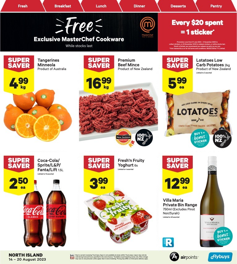 New World Mailer 14 - 20 Aug 2023 with the new super savers, everyday low prices, bonus stickers, recipes, and more. Check out the new offers.
