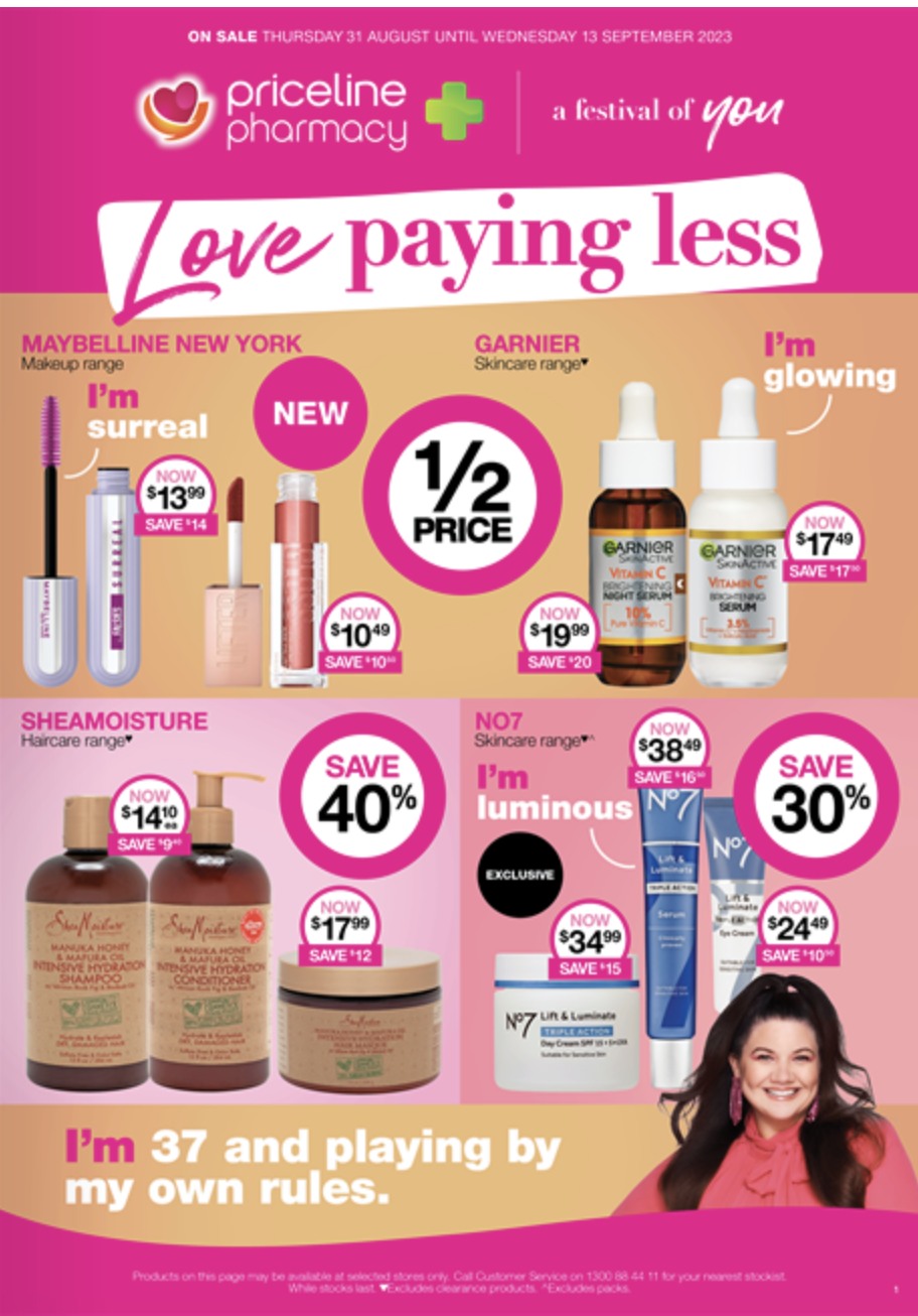 Priceline Catalogue 31 Aug - 13 Sep 2023 Aug 31, 2023 - Sep 14, 2023 Priceline Catalogue « 12345678910111213141516 / 16 » Share & Subscribe Subscribe to Target CataloguesKmart CataloguesBig W CataloguesALDI CataloguesIGA CataloguesColes CataloguesWoolworths CataloguesAll Catalogues (40+) » Other Priceline Catalogue Priceline Catalogue Week 36-37 2025 Priceline Catalogue Week 34-35 2025 Priceline Catalogue Autumn Magazine February 19 - November 30, 2025 Priceline Catalogue Week 32-33 Beauty Bag 2025 Priceline Catalogue Week 30-31 2025 Other Latest Catalogue ALDI Catalogue 8 - 11 Apr 2026Amart Catalogue Jan 2025Amcal Catalogue March 11 - April 5, 2026 Hop into SavingsAnaconda Catalogue EOFY Sale 10 - 26 Jun 2025Angus and Coote Catalogue March 22 - April 12, 2026 Celebrating Love Since 1895Australia Post Catalogue Back to School Jan 2025Australian Butchers Catalogue 7 - 13 Aug 2024Autobarn Catalogue March 24 - April 14, 2026 All For Easter Holiday EssentialsBaby Bunting Catalogue May 2024Best & Less Catalogue Aug 2024Bob Jane Catalogue Jan 2025Cheap As Chips Catalogue December 23, 2025 - January 6, 2026 Boxing Day Door Buster DealsChemist King Catalogue 7 - 21 Aug 2024Chemist Warehouse Catalogue Jan 2025Christmas Aldi Catalogue Big Sale ClearanceColes Catalogue April 1 - 7, 2026 WA PT HEDLANDCostco Catalogue 9 Jun - 6 Jul 2025Discount Drug Store Catalogue Feb 2024Early Settler Cataogue EOFY 2024Ezibuy Catalogue Sale Feb 2024Foodland Catalogue 18 - 24 Feb 2026Foodworks Catalogue 11 - 17 Feb 2026Freedom Furniture Catalogue Aug 2024Goldmark Catalogue February 15 - March 22, 2026 Get the Look for LessHarris Scarfe Catalogue 24 May - 7 Jun 2025Harvey Norman Catalogue Computers Amazing Tech Deals April 1 - 15, 2026Hop into Bunnings Catalogue March 11 - April 5, 2026 Warehouse for the Lowest PricesIGA Catalogue April 1 - 7, 2026 NSW Large V2IKEA Catalogue Jun 2024Innovations Catalogue Summer 2024Jaycar Catalogue 7 - 20 Jan 2025JB Hi-Fi Catalogue 22 - 28 May 2025Lenovo Catalogue Jan 2024Liquorland Catalogue 7 - 13 Feb 2024Low Prices For Life - April School Holidays Kmart Catalogue April 1 - 29, 2026 Make It A BCF Catalogue March 16 - April 6, 2026 ing Fun EasterMichael Hill Catalogue Unmissable Sale 2024Mitre 10 Catalogue EOFY 2024Myer Catalogue March 29 - April 19, 2026 Toy SaleNew World Mailer 30 Mar - 5 Apr 2026Officeworks Catalogue March 30 - April 14, 2026 We've Dropped Prices on Hundreds of School Holiday Must-HavesPriceline Catalogue Week 36-37 2025Prouds Catalogue March 22 - April 12, 2026 Sparkle and SaveRebel Sports Catalogue Jun 2024Repco Catalogue Father\'s Day 2024Sale Fantastic Furniture Catalogue December 18, 2024 - February 3, 2025 School's Out Big W Catalogue April 1, 2026 PreviewSpotlight Catalogue 15 Jan - 4 Feb 2025Stratco Catalogue Jan 2025Supercheap Auto Catalogue December 14 - 21, 2025 Make It A Super ChristmasTarget Catalogue 3 - 27 Apr 2025The Good Guys Catalogue 16 - 22 Jan 2025The Reject Shop Catalogue Jun 2024Total Tools Catalogue Father\'s Day 2024Toyworld Catalogue Toy Sale Oct - Nov 2024Weekly Woolworths Catalogue April 1 - 7, 2026 NSW NorthWoolworths Weekly Woolworths Mailer (Countdown) March 29 - April 12, 2026 Priceline Catalogue 31 Aug - 13 Sep 2023 advertises new deals on beauty products. Half-price sale in the new catalogue. 31 Aug 2023 Editor