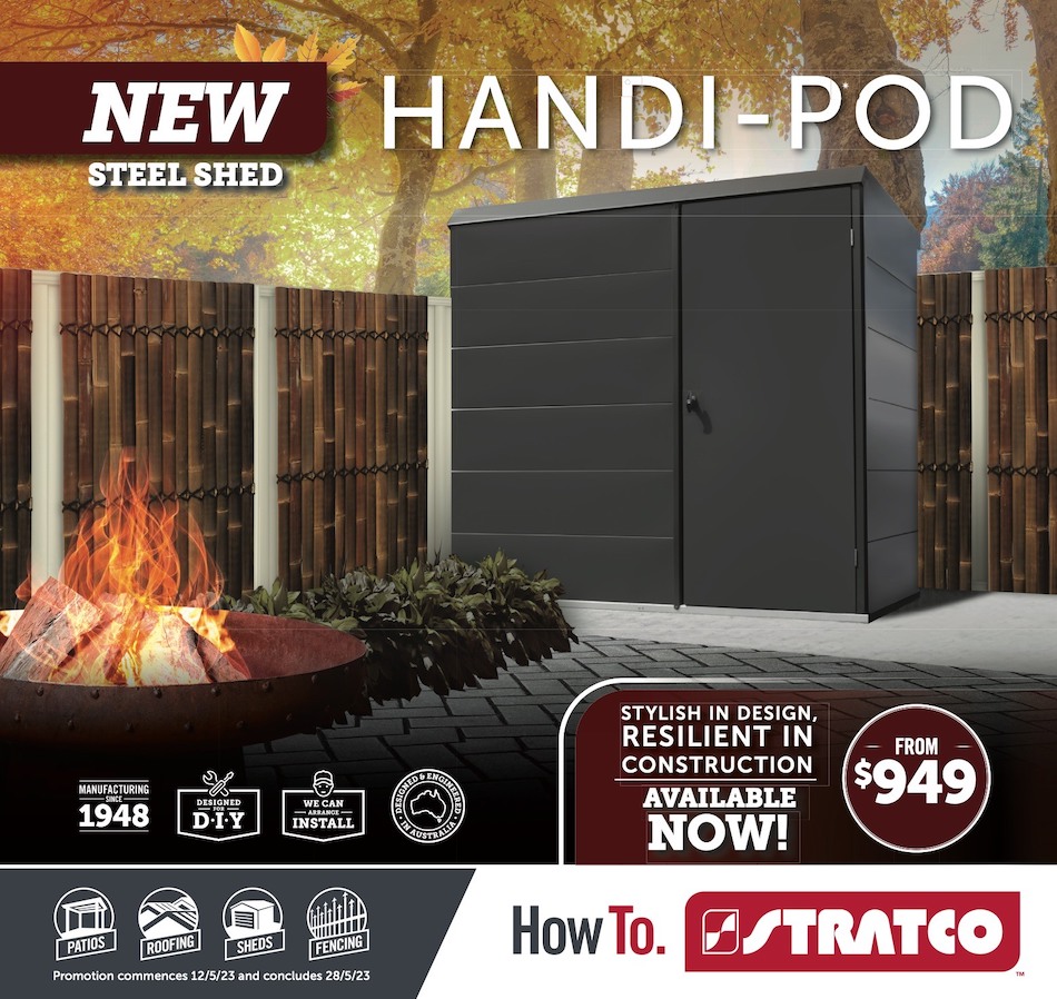The Stratco Handi-Pod Steel Shed is a highly sought-after item featured in this catalogue - and it's no surprise why. Its slick and innovative design is mouthwatering, plus it provides long wear and tears against all hearty weather conditions. Looking for a bargain? This shed is guaranteed more bang for your buck with prices starting at just $949! Keeping your gardening utensils and machinery flawlessly organized comes as an added bonus. Recommended to garden enthusiasts everywhere!