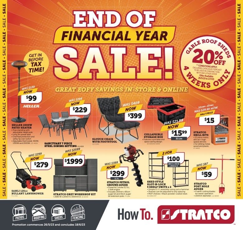 It's time to start preparing for EOFY 2023 and the Stratco Catalogue has arrived to help! See what sorts of deals this global material solutions company can offer you. Enjoy discounted prices when it comes to storage boxes, chairs and stools, dining sets, drill bits, and workshop kits. Let these amazing products revamp your home or your DIY projects! Here are some featured items we think are worth snatching up: