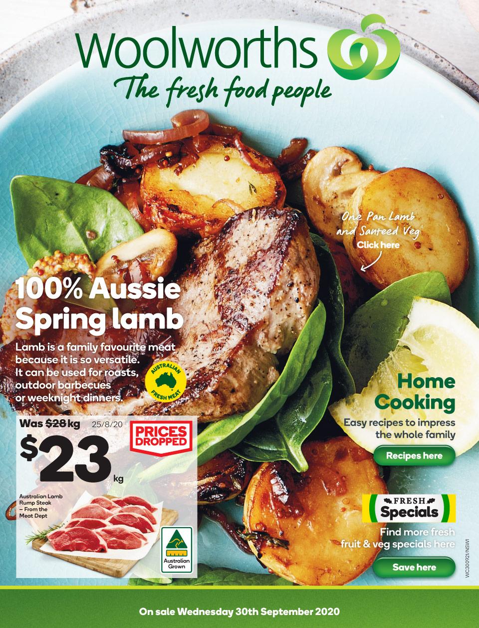 Using the new Woolworths Catalogue, you can buy Aussie spring lamb for only $23/kg this week. Start saving on the drinks, pantry products, fresh food, and other grocery items on Wednesday. Asparagus is a new deal of the week and the price will be only $1.50. The special sale of the personal care products in the Woolworths Catalogue may be helpful for you. There are some half prices in the non-food range, too. Body wash items of popular brands, Quilton, and more can be seen on pg 4. Of course, the catalogue is a great tool to find some more discounts of fresh fruits, meat, and seafood. Australian beef rump steak is one of the items on sale. Save $3 per kg of that meat-type at Woolies. Woolworths Catalogue 30 Sep - 6 Oct deals: